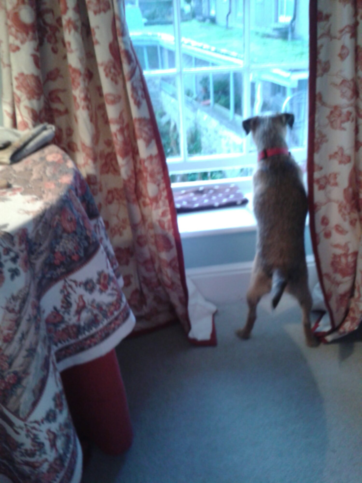 This is the first time that we have taken Maude with us to stay in an hotel. We take her out with us as much as possible but there are times when she needs to stay in our room. These are the times that she appreciates the view as Border Terriers are possibly the noisiest dogs there are so she likes to see what’s going on, as you can see