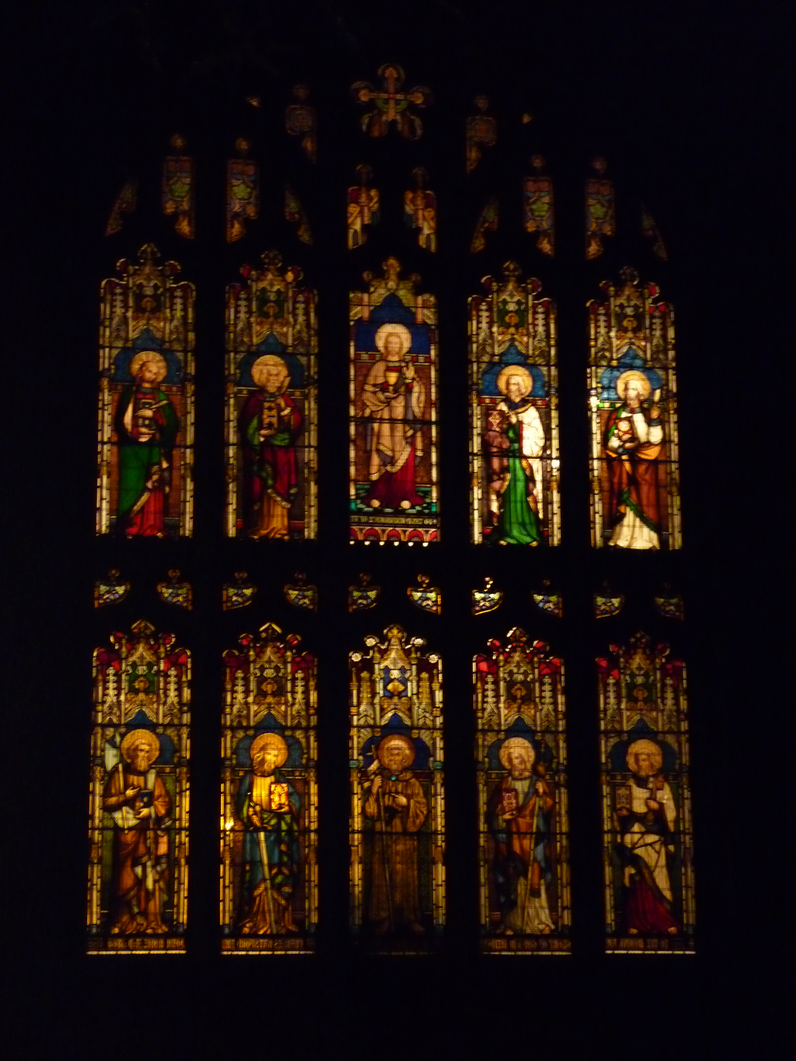It was dark so I thought that I would try some night time shots, which frankly didn’t work at all – not enough light. On our way back we cut through the churchyard of Weston village church and I was quite taken by the light coming from inside the church through the stained glass window. Best I could do in the end.