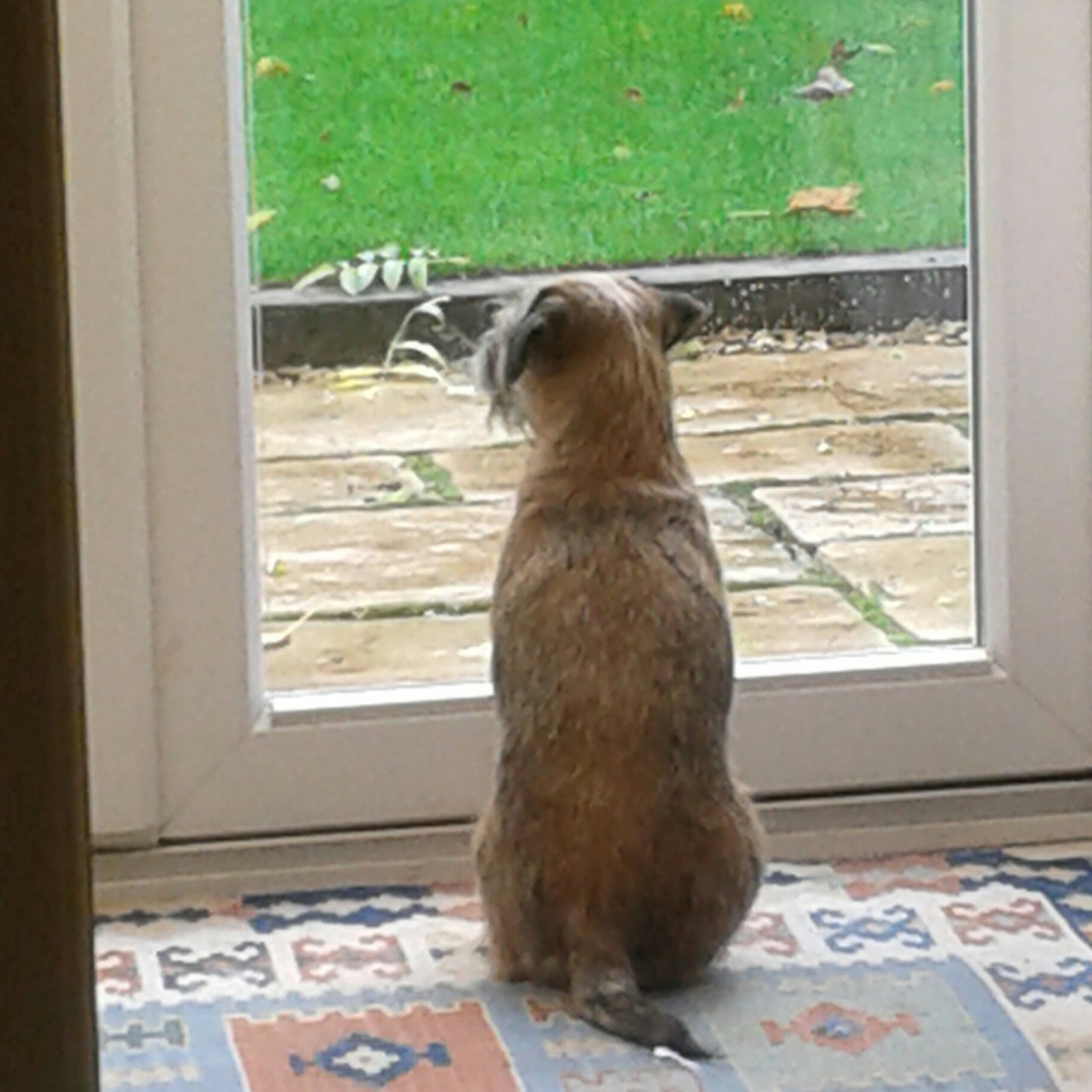 Like most BTs she is incredibly nosey and always needs to know what’s going on. When she goes out into the garden she will patrol it thoroughly to make sure everything is OK and that there are no cats about (that’s Oscar from next door who chooses to ignore her completely). The she will stand On Guard on the terrace, bristling and will probably bark or growl just to let everyone know who’s in charge.