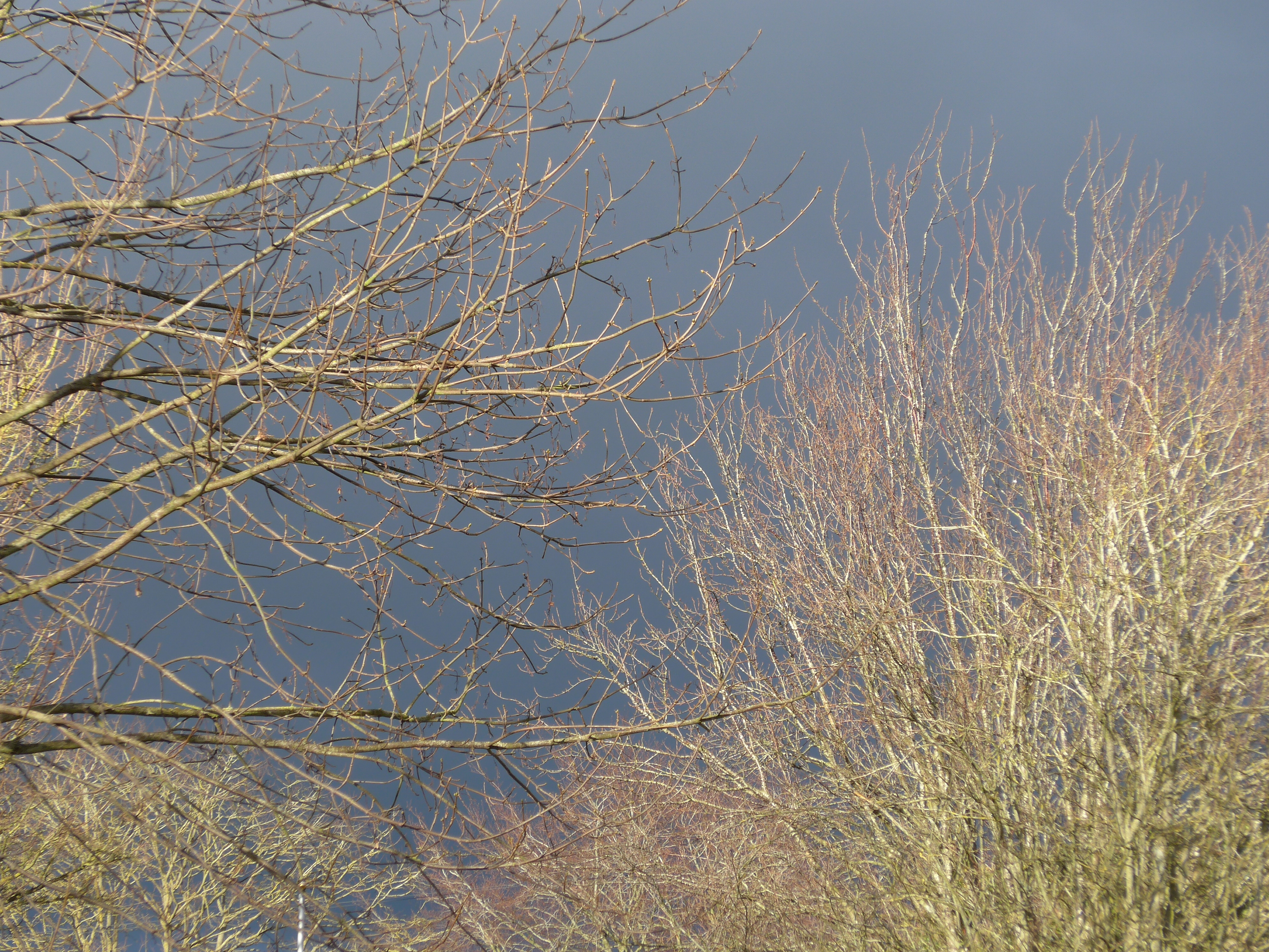 This afternoon during a moment of sunshine it still looked very threatening out behind our house, as you can see. I’m so glad that there are no leaves on the trees as then the damage would be so much worse.
