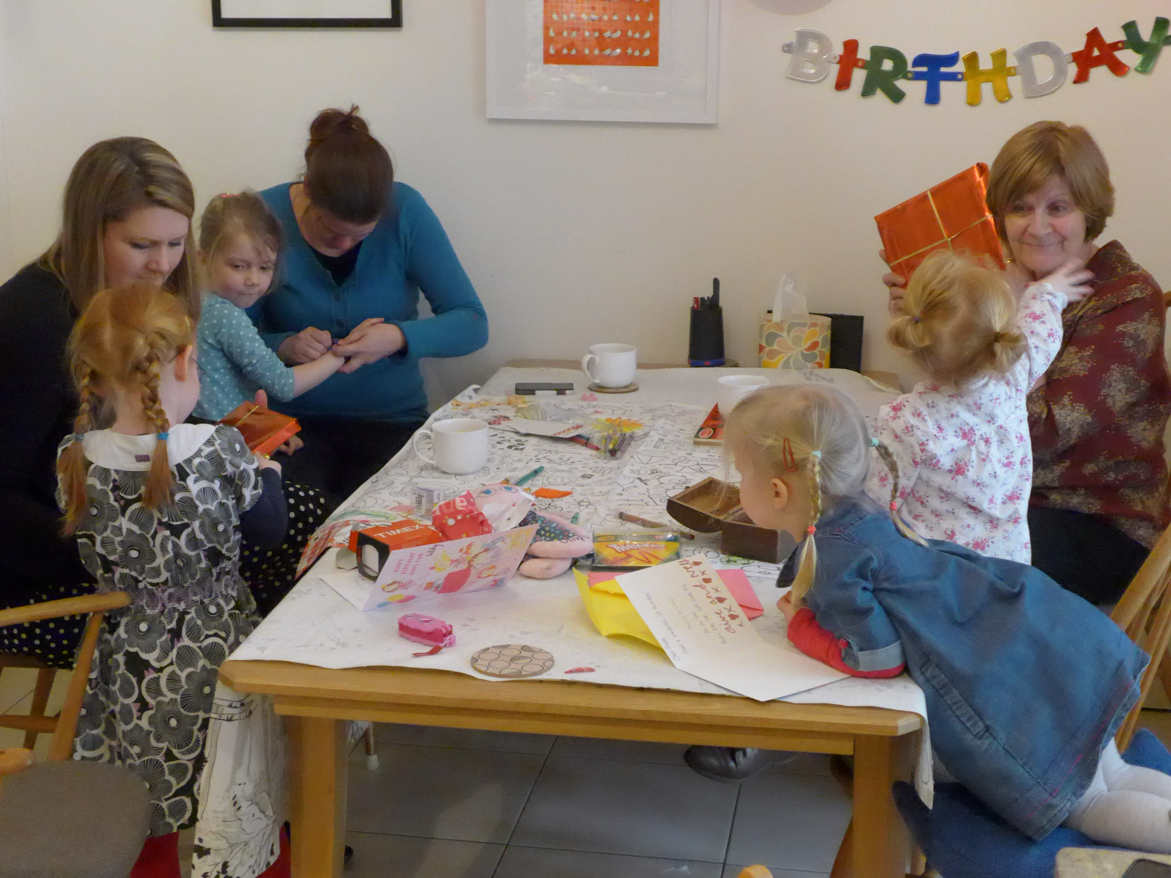 Back to going with the flow. Two of the granddaughters have had recent birthdays so there were parcels to be opened; and the other two had to have something to open as well or there would have been tears. As a result yesterday at tea time we had one wife, two daughters and four granddaughters in attendance; the dog was shut in the conservatory to stop her getting overexcited (everyone else was) and I took photos.
