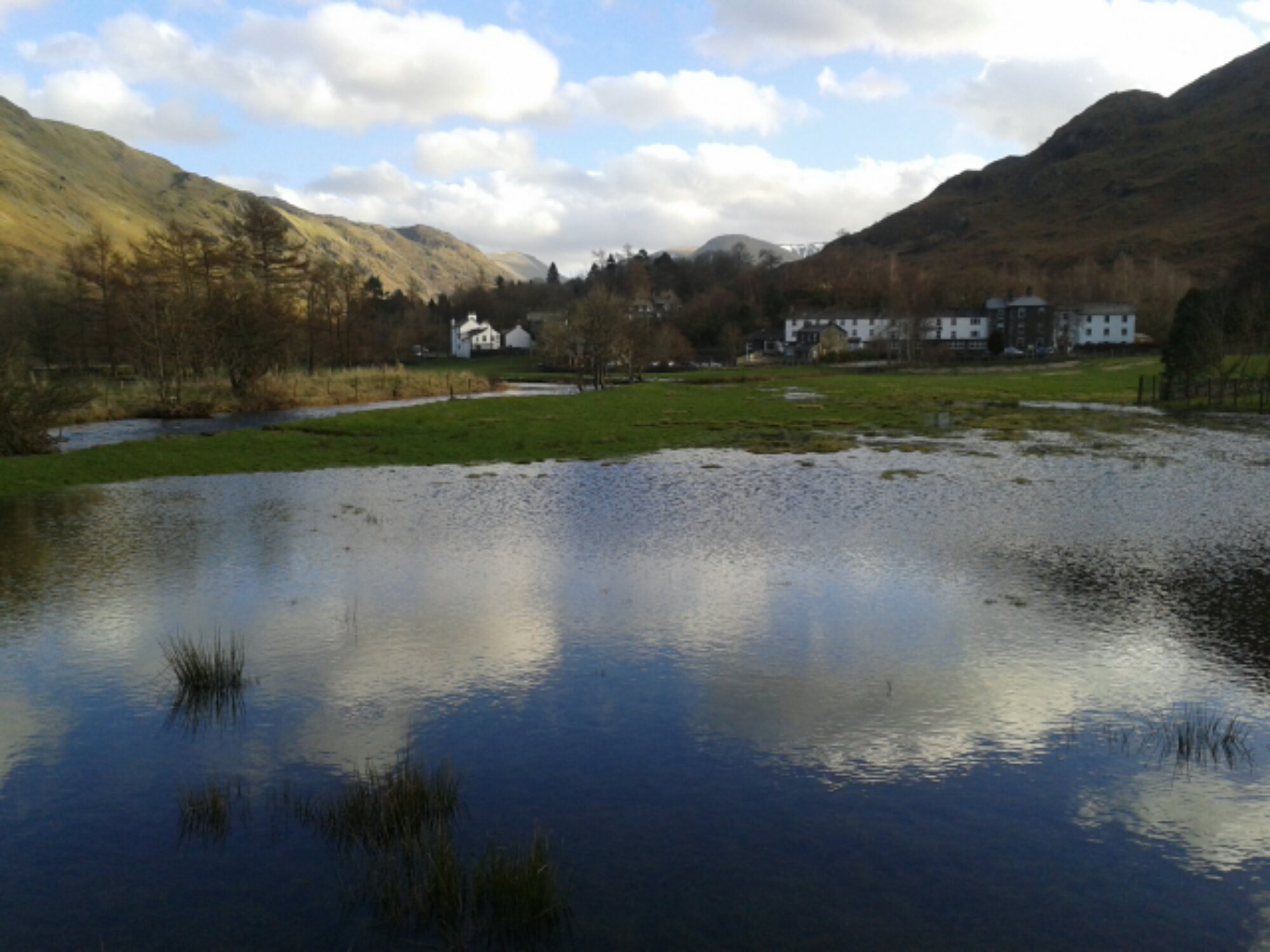 This year I am meeting up with some of my old Sussex friends for a week based around Glencoe. To break the journey over two days I am staying tonight at our club’s cottage in Patterdale. I was here five weeks ago in terrible weather but today is lovely although there is still a lot of flooding.