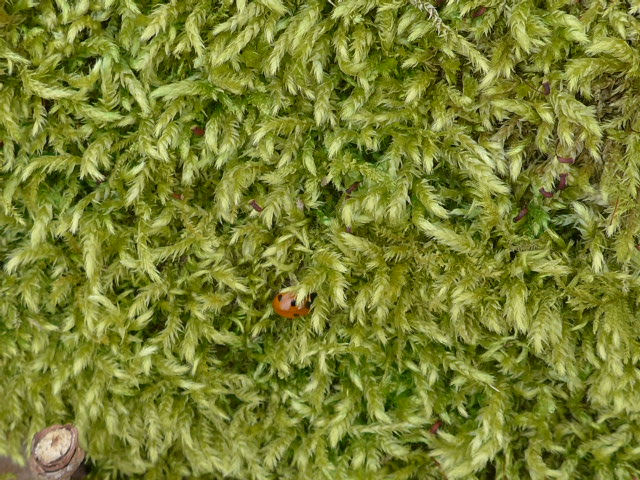 I spotted a log on the ground completely covered in bright green moss and on the moss was a ladybird. As you can see the little bugger moved when I took a picture.