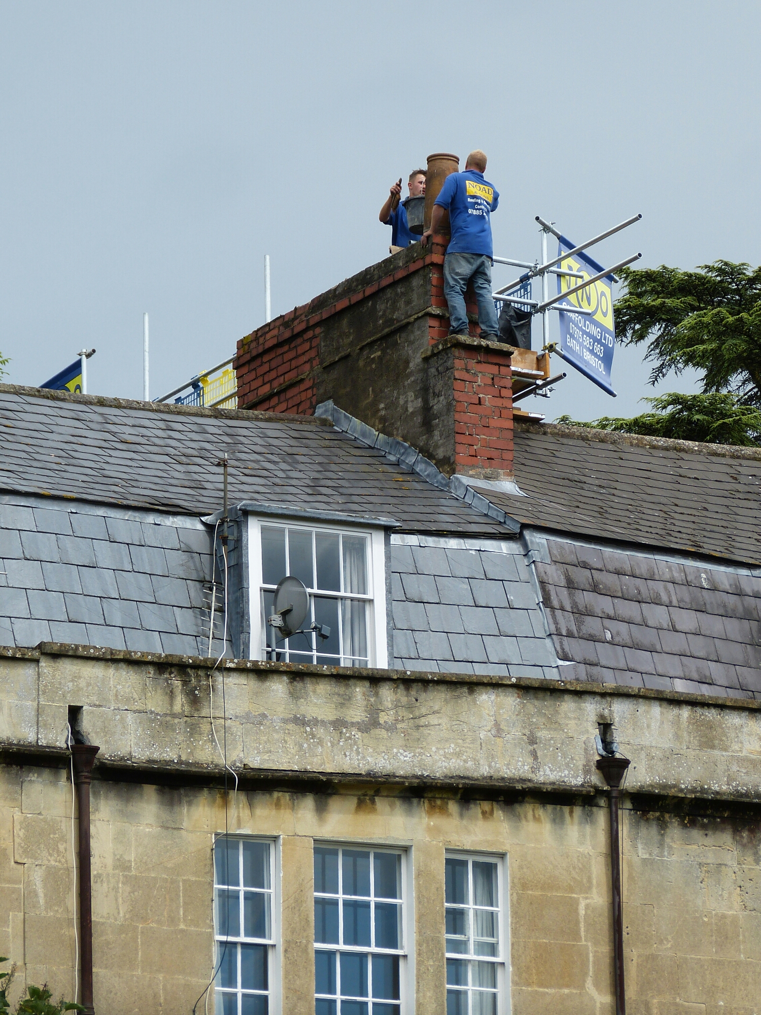 The houses opposite us have lovely old chimneys (see Day 172) that occasionally need to have the chimney pots resecured to the brickwork of the chimney stacks. This requires a large scaffold tower and platform for access, these houses are on four floors plus a cellar. Given last year’s window cleaning case and the building of substantial scaffolding I was surprised to see this today.