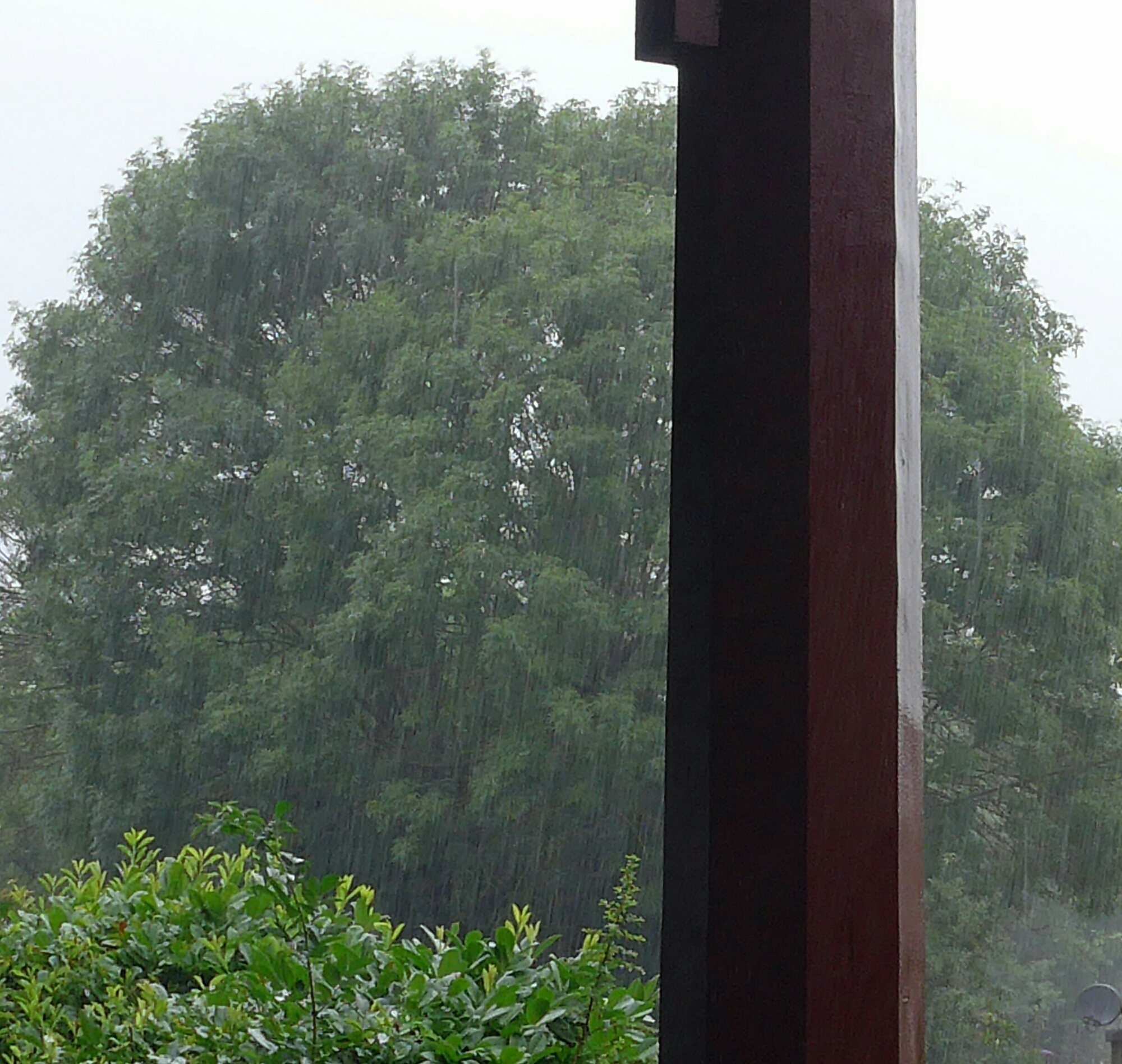 Goodness me but we had a busy and disturbed night with thunder, lightning and torrential rain. This morning I went into Bath to the Farmers’ Market at Green Park and just as I got under cover there we had another deluge. I hope that this picture gives you an idea of how heavy it was.