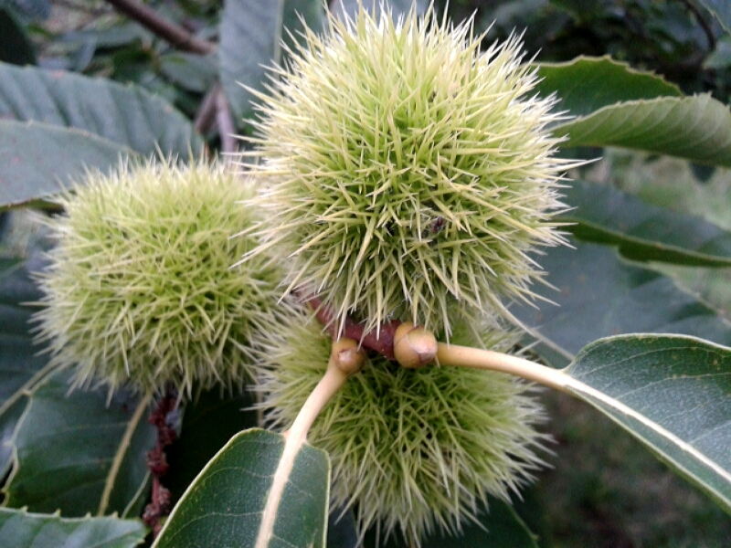Walked Maude in Weston Park this afternoon and came across these sweet chestnuts ripening. On such a small tree I can’t think they will come to much for a few years but there are prodigious numbers of fruit this year. Not very friendly things to pick!