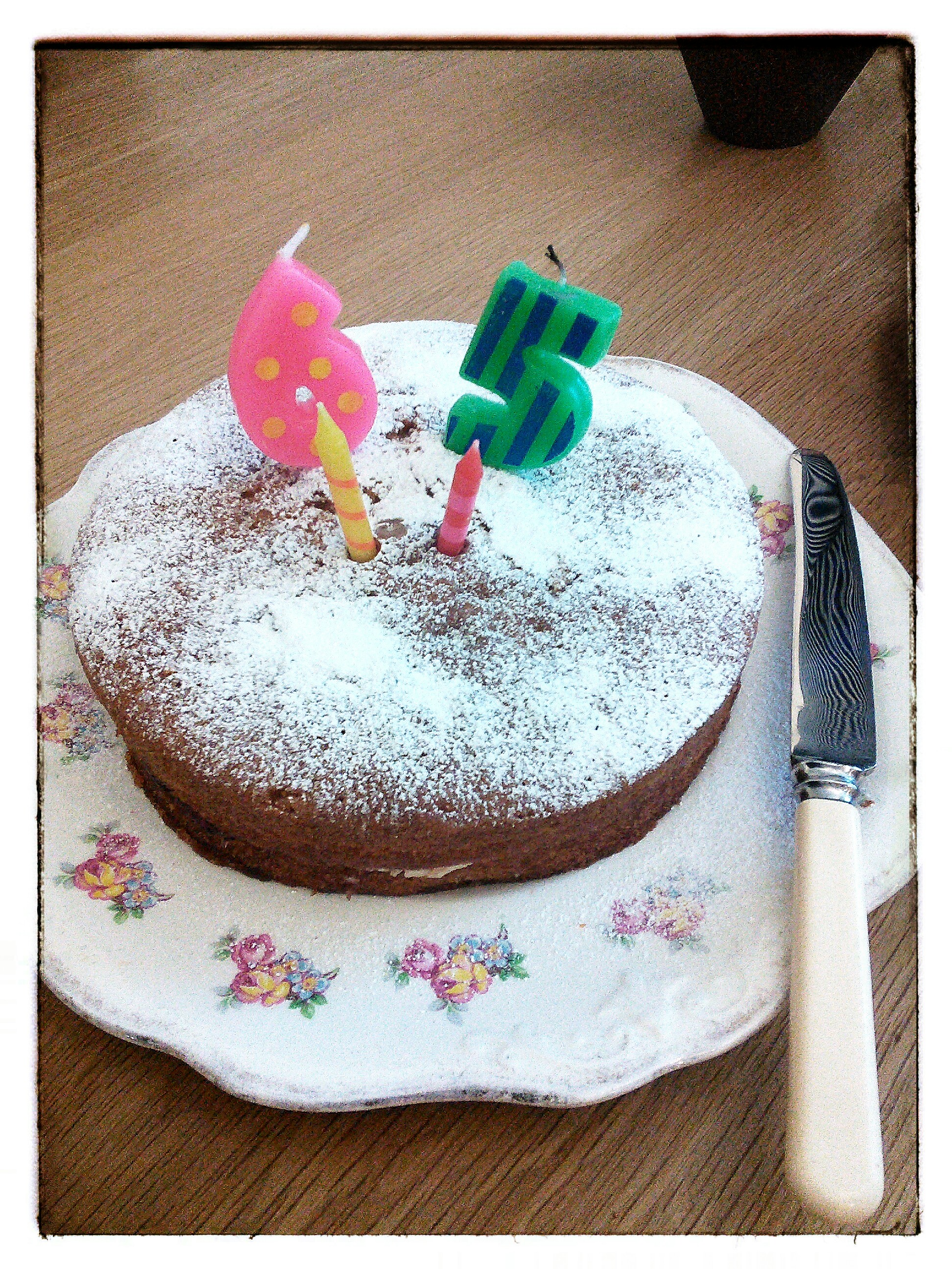 Today is my birthday and this was my birthday cake, it was delicious. One daughter and two granddaughters helped us eat it. A note on the candles, Mrs Sixwheeler did not have the right ‘numbers’ candles so made it up with sixty five plus two more. Now that’s what I call initiative.