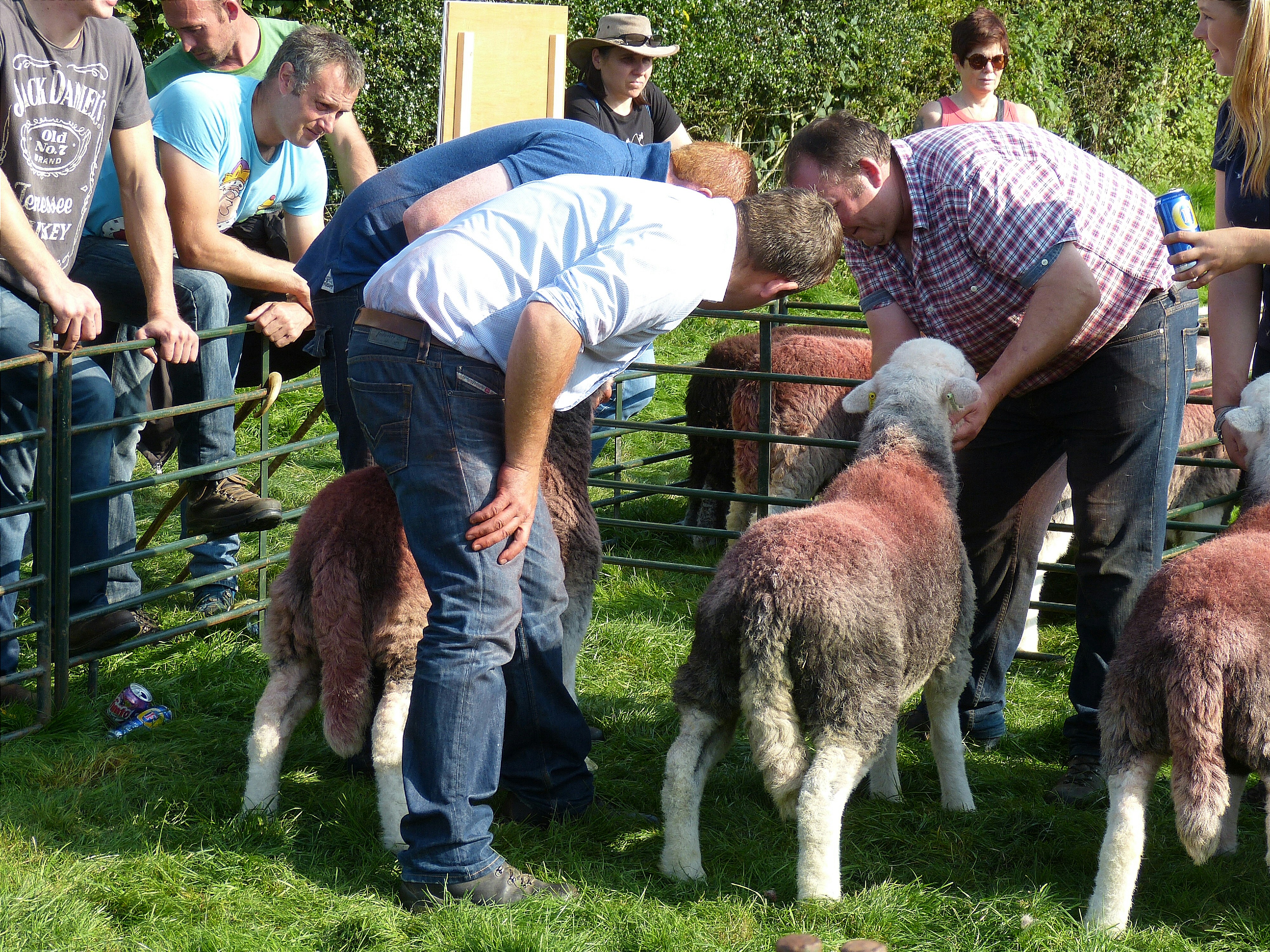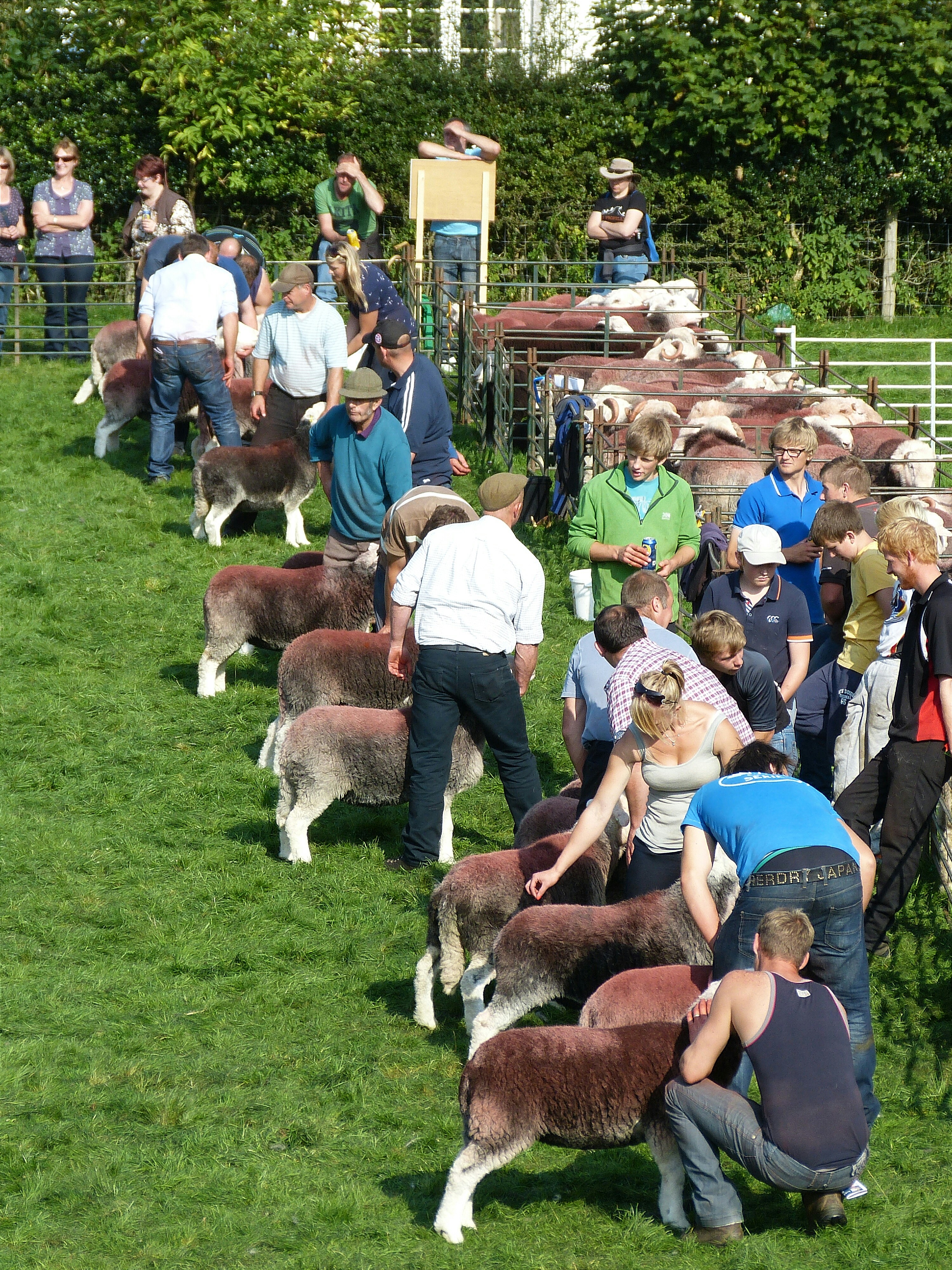 Borrowdale 2There is much inspection of each sheep looking at heads, teeth, conformation, legs and, in the case of the tups (gentlemen sheep!) of testicles, so important if he is going to be used for breeding. This point caused much mirth when the commentator invited spectators to come and have a good feel – of the sheep not the judge!
