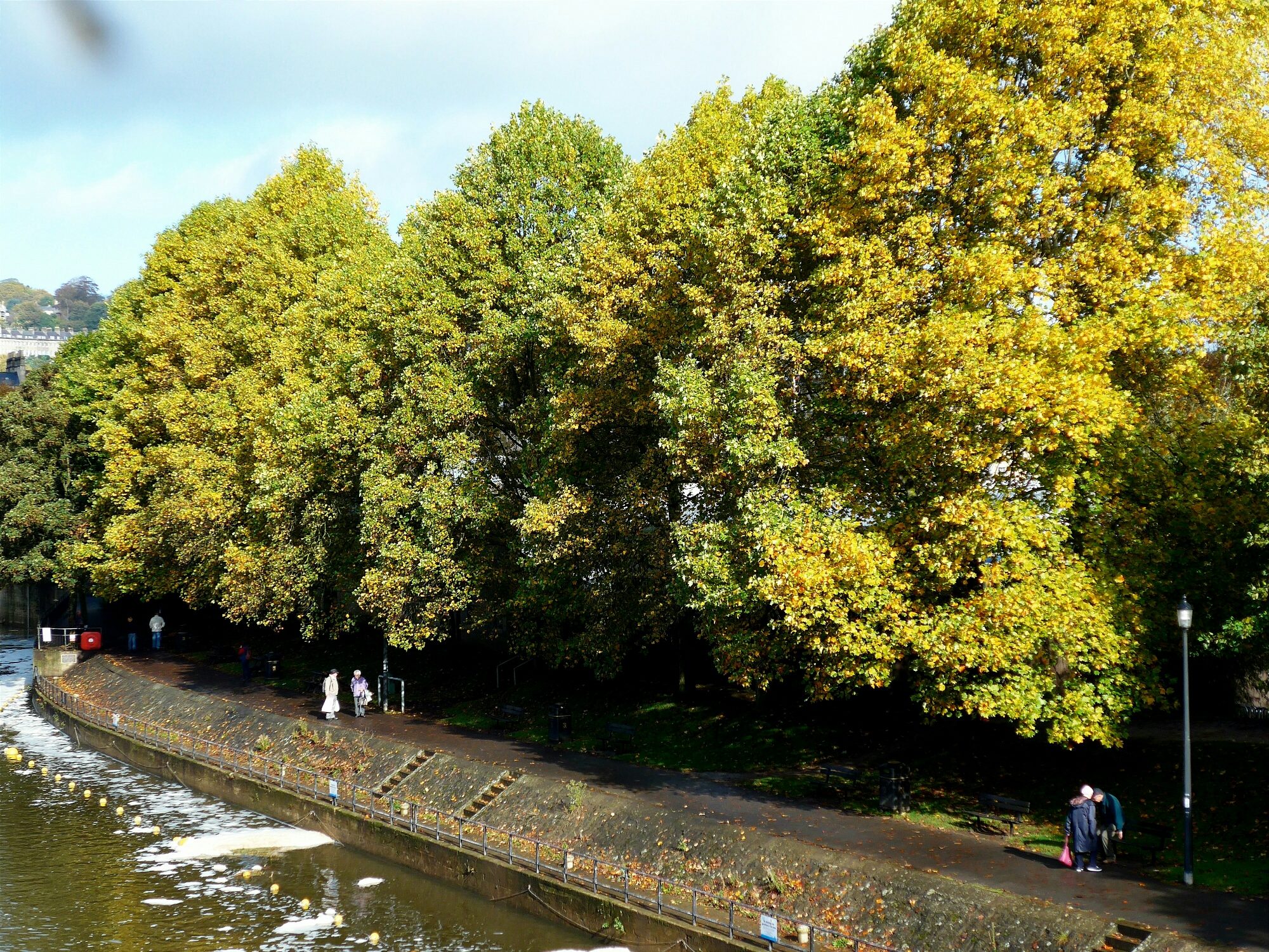 Another beautiful day in Bath today, not at all like a mid-October autumn day. Warm, windy and sunny so a good day to be out and about. This is the River Avon riverside in Bath taken from North Parade; behind the trees on the right is the Recreation Ground or The Rec as we know it here, the home of Bath Rugby. Out of shot to the left are Parade Gardens and Bath Abbey.