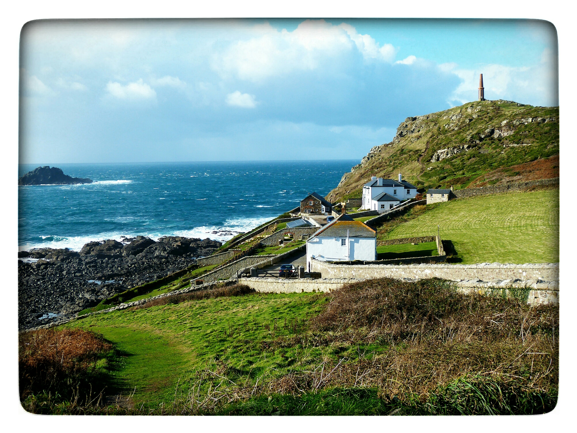 In the picture Cape Cornwall with its day mark is on the right, the rocks in the sea to the left are The Brisons, the houses above the bay have the most wonderful views.