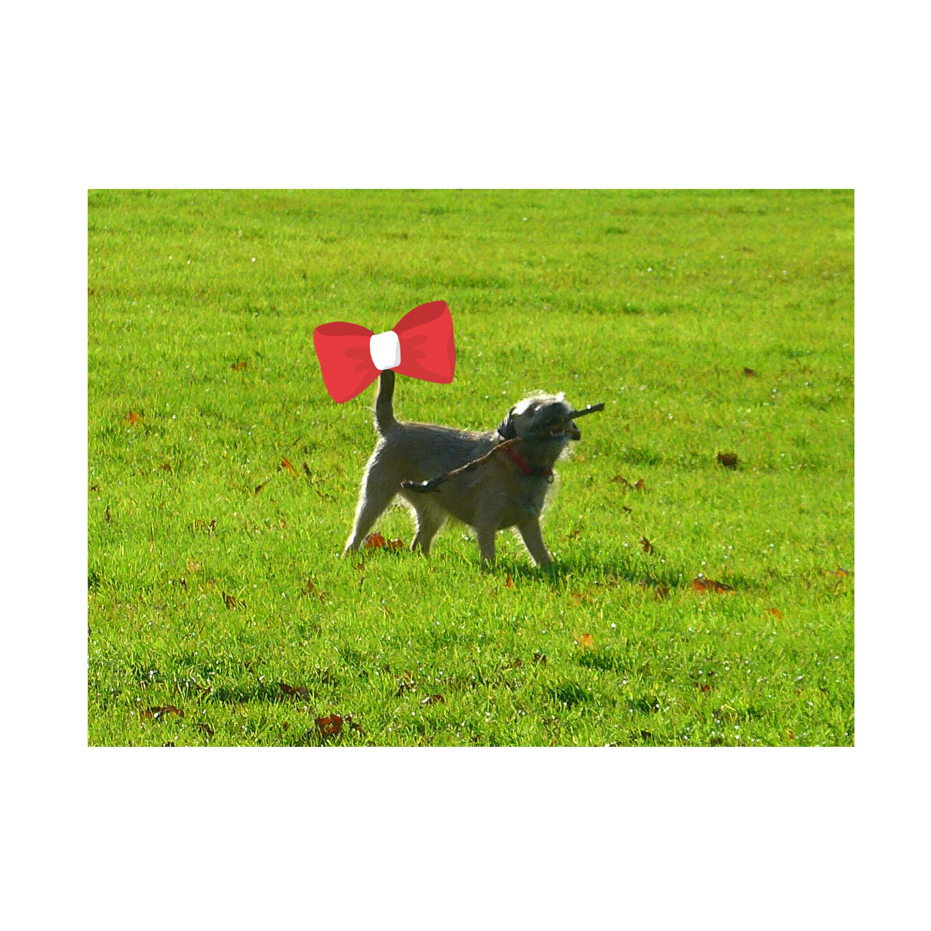 So here, to wish you all a Happy Christmas, is one I took yesterday. Its Maude, my trusty walking companion, giving hell to a stick. The bow I added digitally, I didn’t know how to do that until yesterday and I could improve my skill a bit but it’s the thought that counts. Some of you will already seen this on Facebook for which I apologise, but it’s really meant for everyone else.