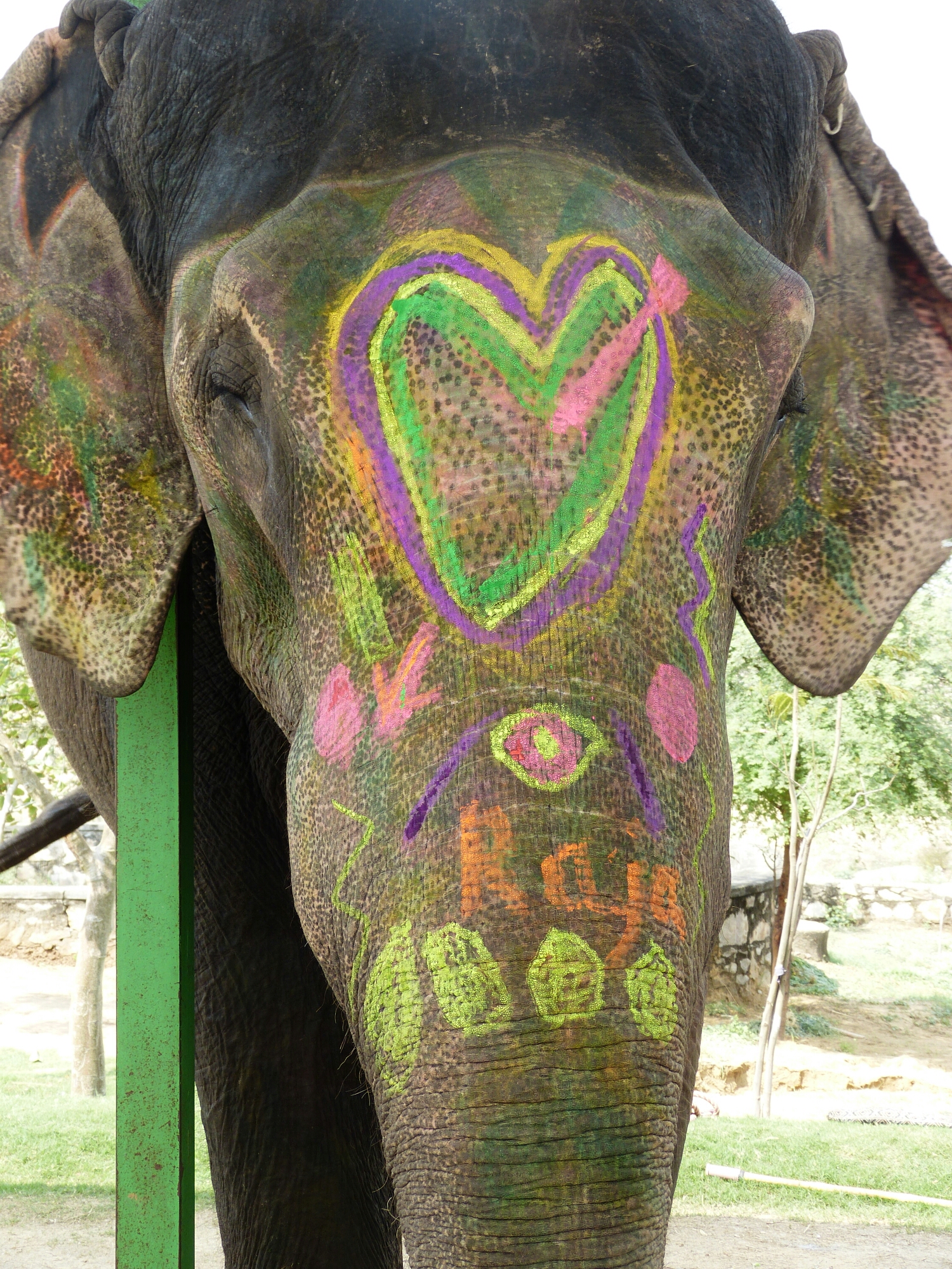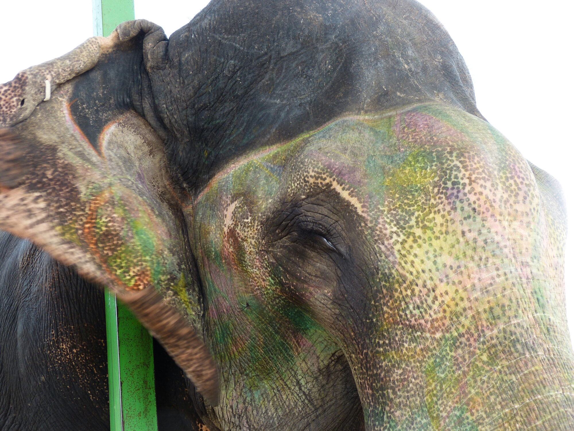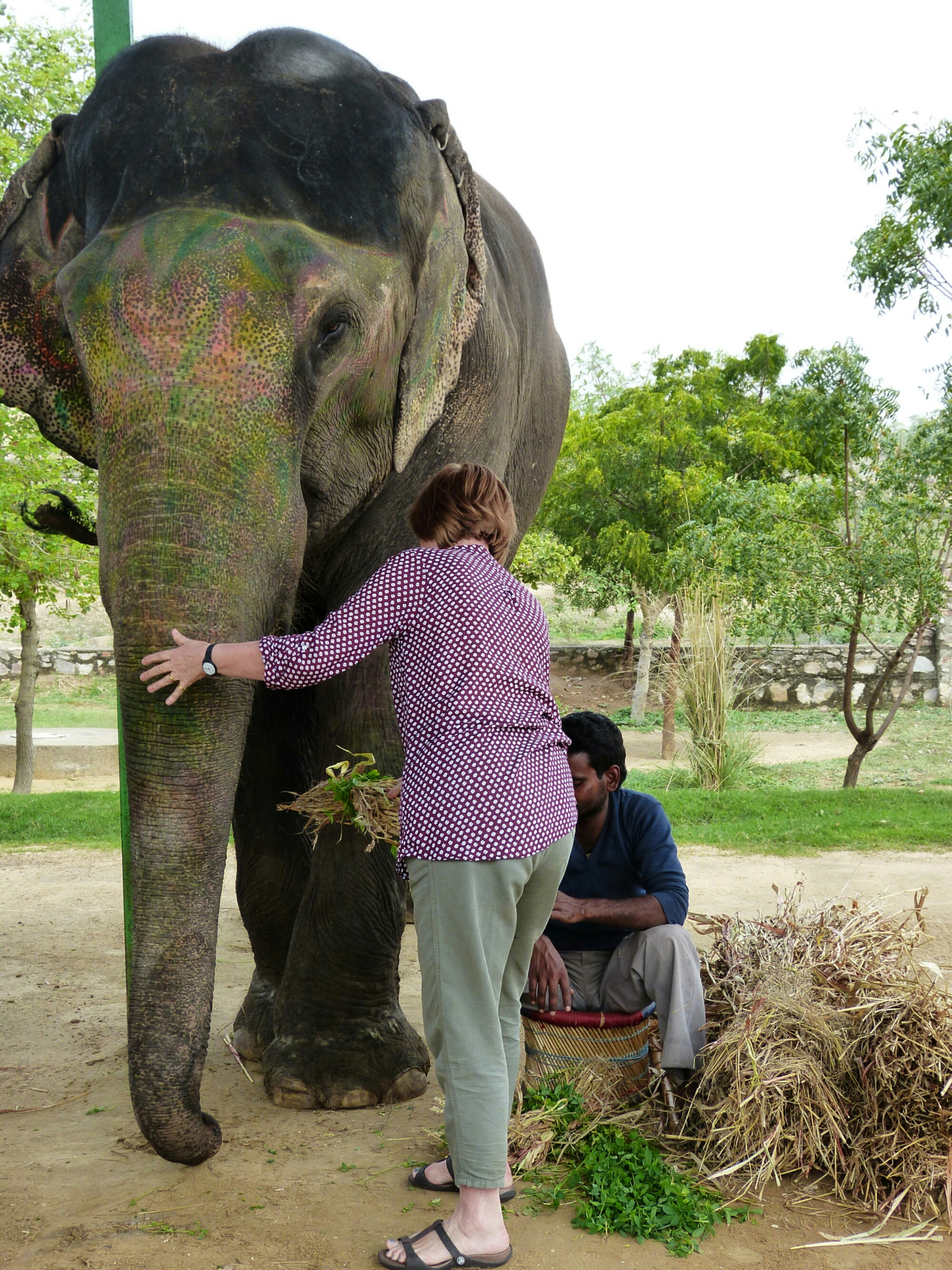 Elephants never forget, or so they say. If that’s true I’m glad that there are no mirrors at Elefantastic as next we painted him. Decorating your elephant is a traditional local art form but I’m afraid our efforts were very poor.