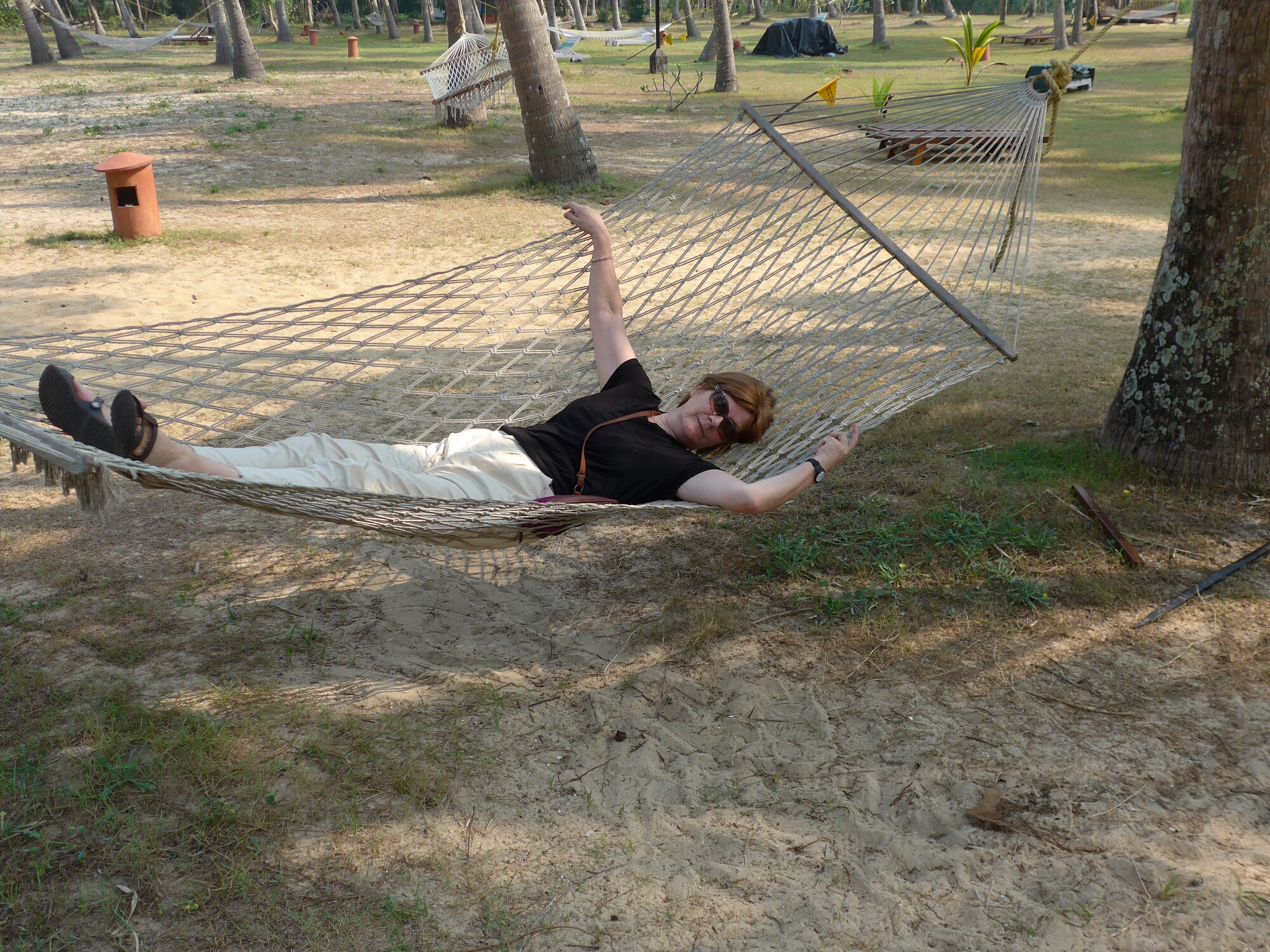 In fact in important areas where people are likely to gather, like outside reception, they have installed baskets round the tops of the trees to catch any falling coconuts.