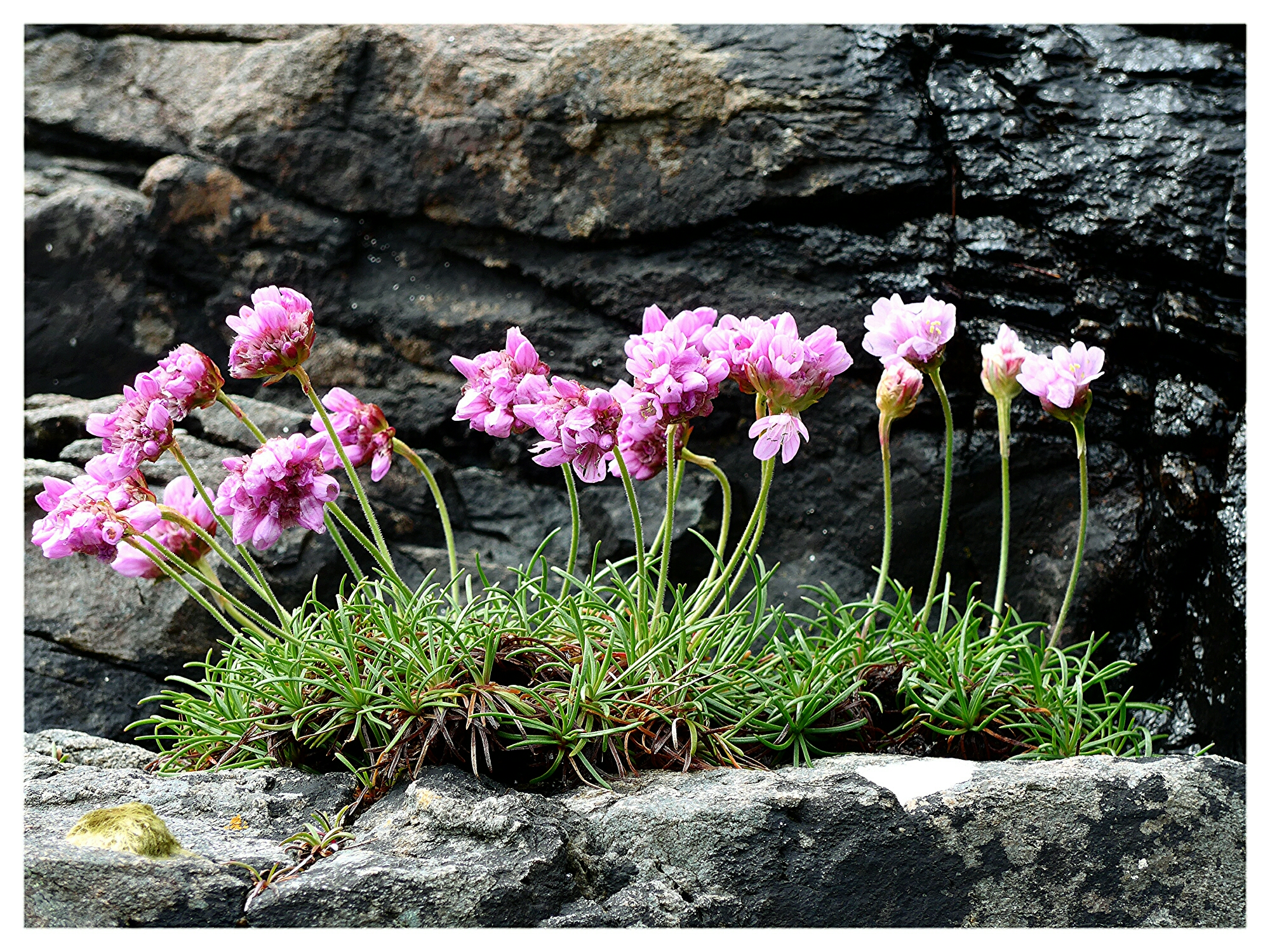 where there were Oyster Catchers flying about, seals on the rockd and lots of lovely Sea Pinks, known as Thrift, it’s another of Mrs Sixwheeler’s favourites so this is for her.