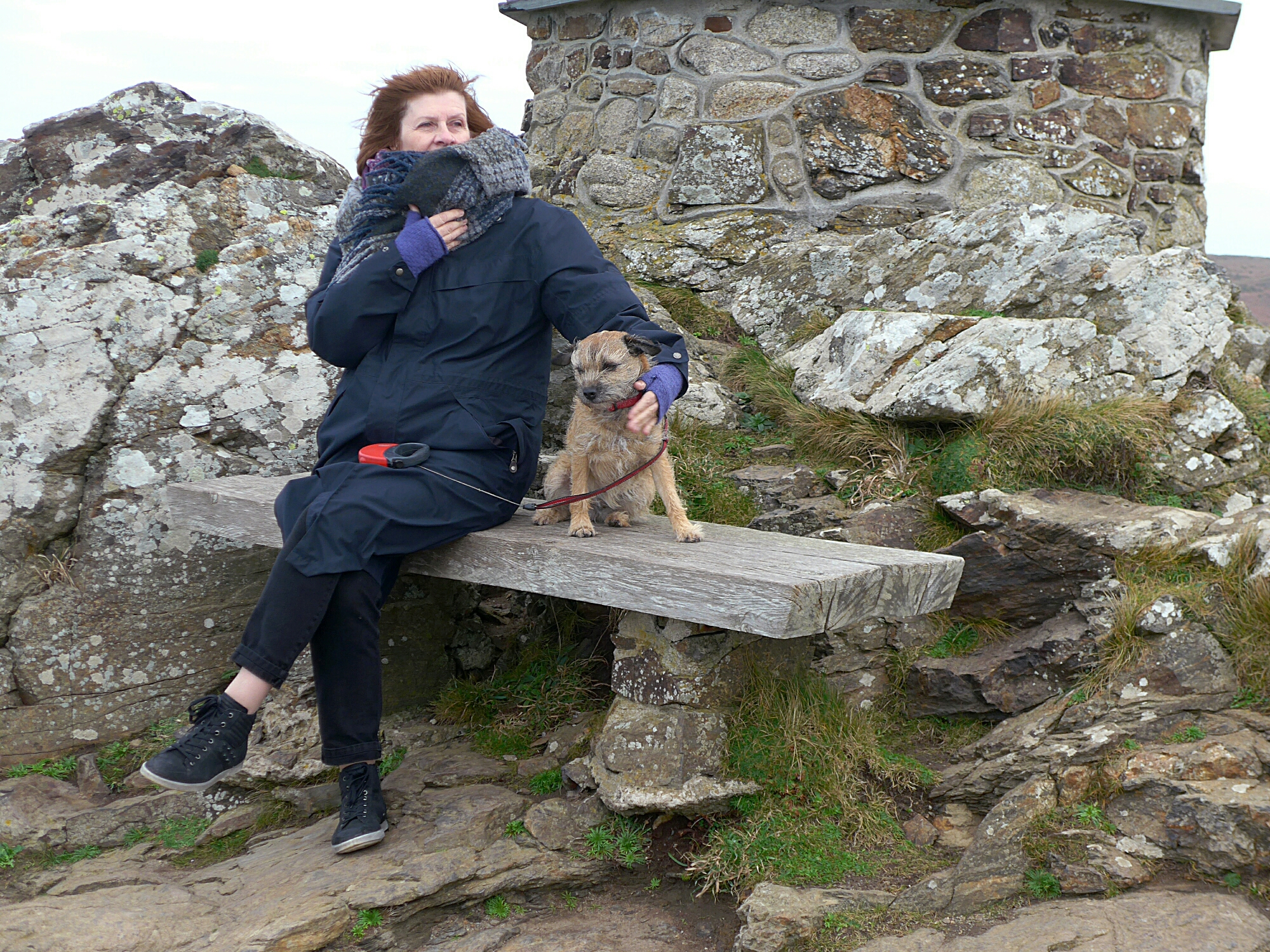 We continued up to the top where Mrs Sixwheeler and Maude sat for a very windswept photo.