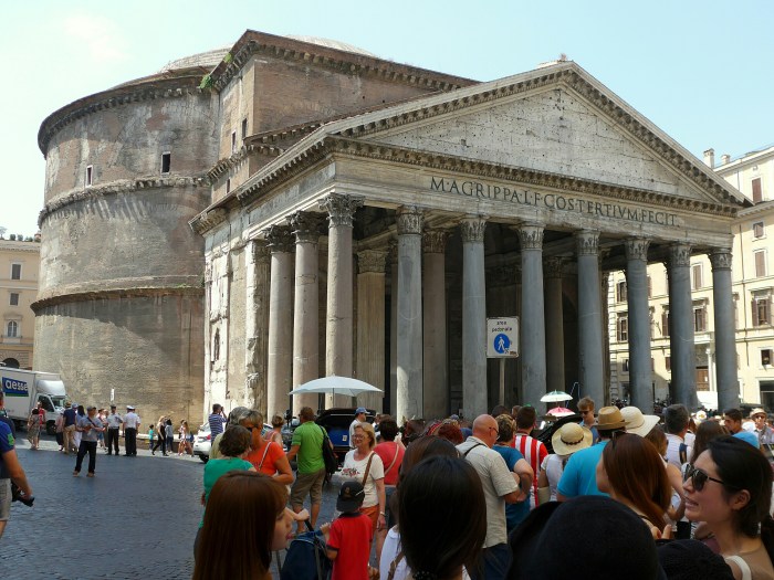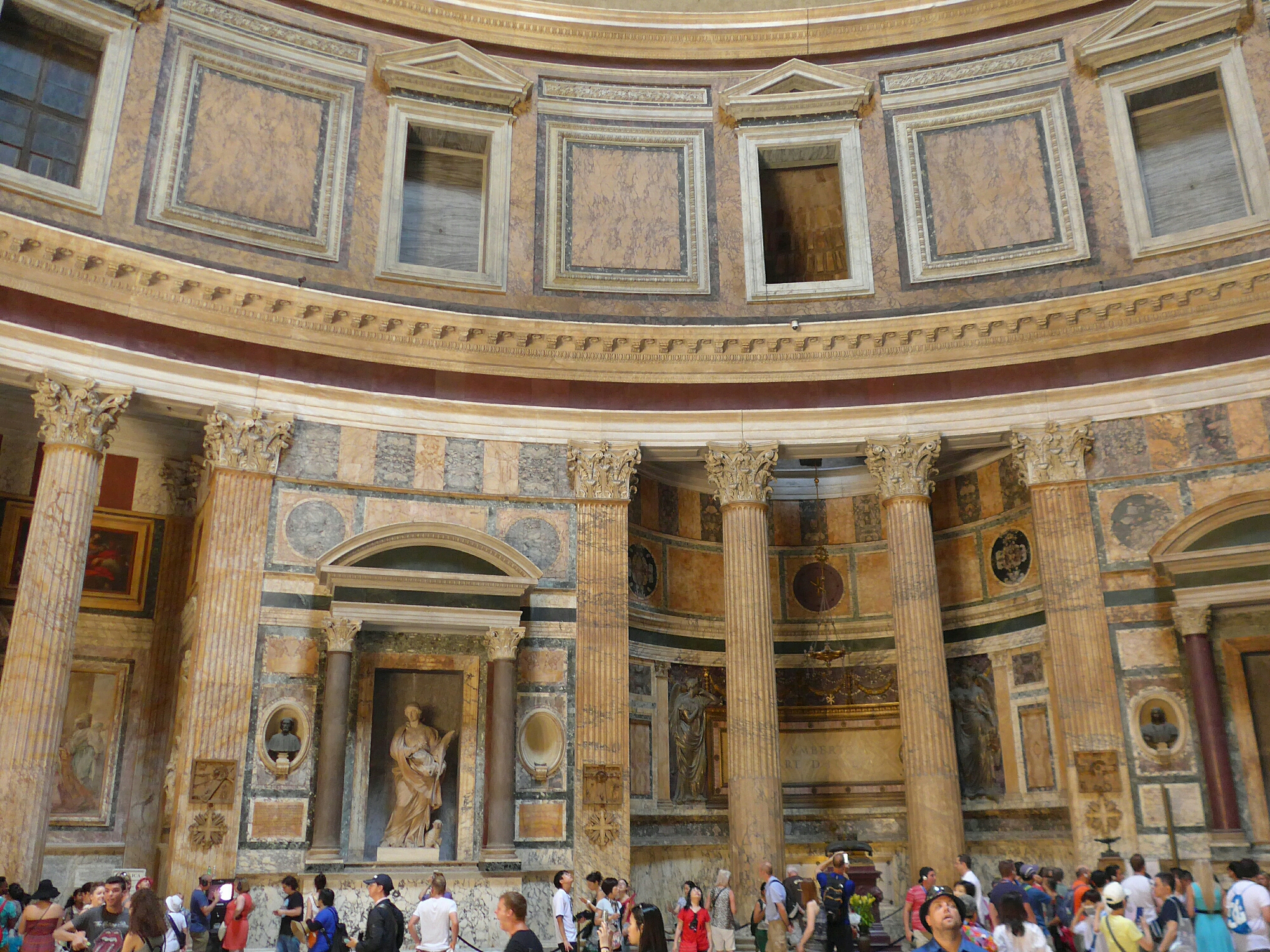 This magnificent building is on a former pagan temple but was built by Marcus Agrippa but converted into its present form by the Emperor Hadrian, he of the wall. The columns at the front of the building were quarried and carved in southern Egypt and shipped to Rome complete, wow. You can tell we had a guide! It is a magnificent and interesting building, I’m not going to bore you with too many pictures but this one is of part of the interior which is beautifully decorated and also gives you some idea of the crowds.