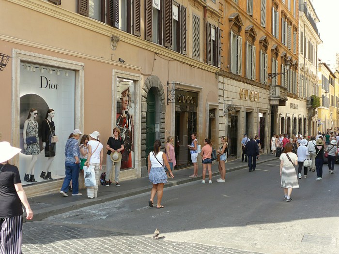 So we moved on. This area running down the Via dei Condotti is the place to come for serious shopping, the eagle eyed among you may spot Mrs Sixwheeler lurking in this picture outside Dior. Some hope!