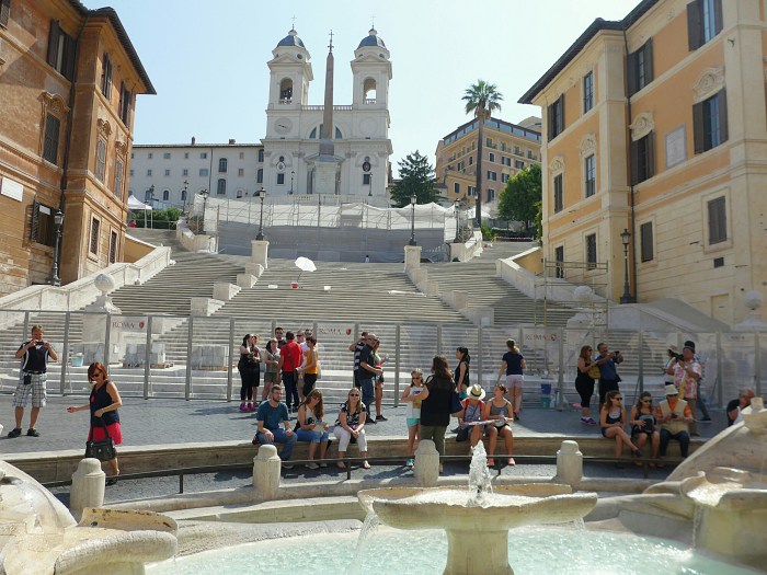 And once again it’s very hot, but this was part of the plan as it forces us to meander along noticing things and keeping as cool as we may. Our first stop was the famous Spanish Steps and the first thing we noticed was that they are closed for upkeep and cleaning!