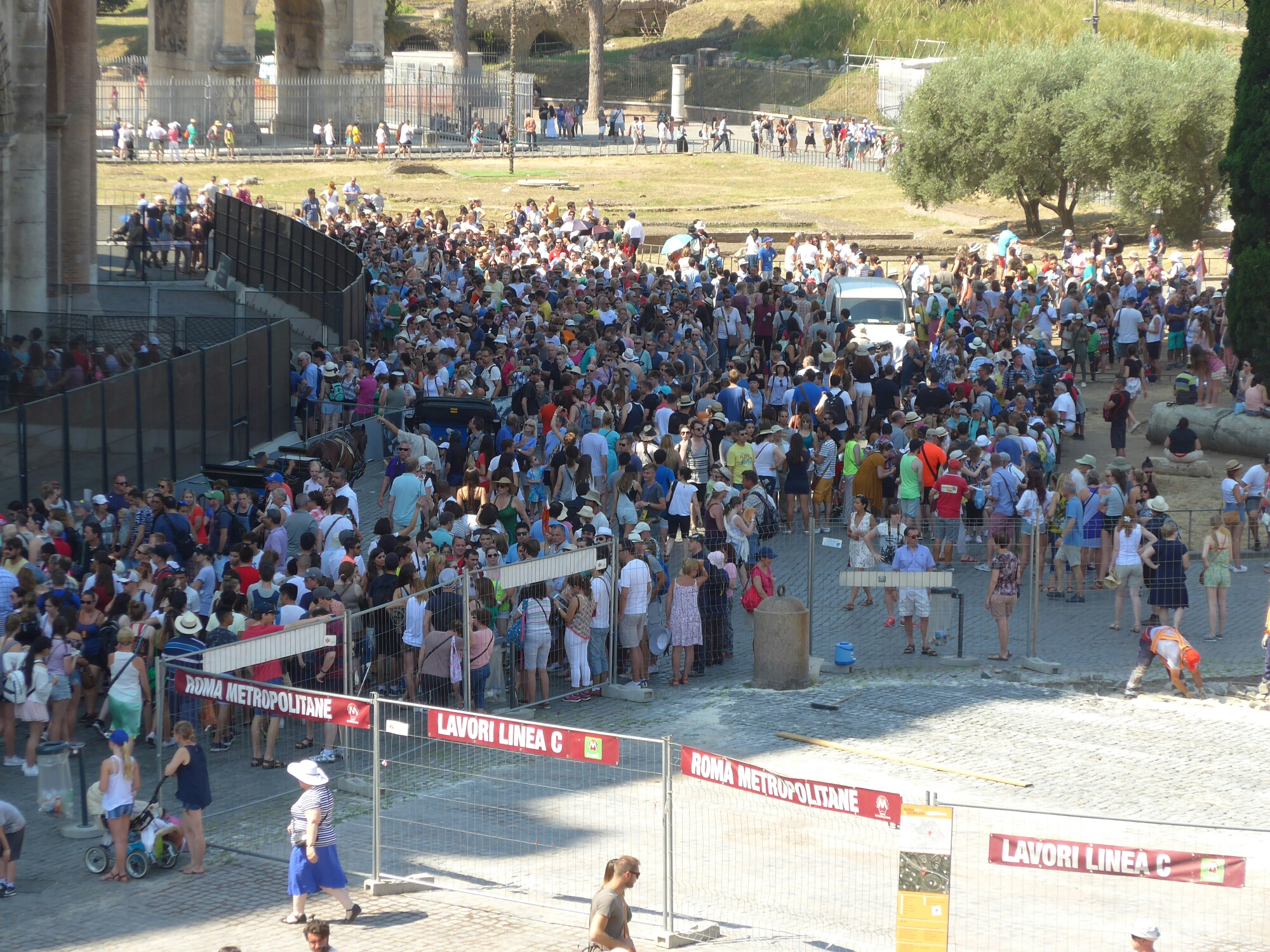 We had decided before we arrived that we would use this visit to see as much as we could but without paying entrance fees or queuing to get into places; I’m really glad that we did. The current admission for the Colosseum is €12 for an adult but you have to endure the queues that you see above, or you can pay around €35 per head for a “guide” and skip the queues and I have to say I’m not comfortable with that. It was exactly the same at St Peter’s and I just hate this two tier “unofficial” system.
