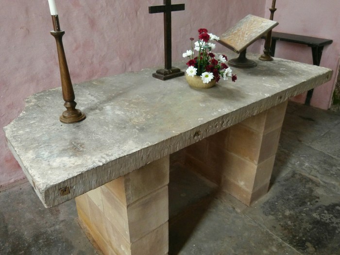The altar stone seen above is the original Saxon altar that was in use for over 500 years until, like all stone altars, it was thrown out on the orders of Edward VI at the start of the Reformation; it was rediscovered some 200 years later and restored to the church in 1901.