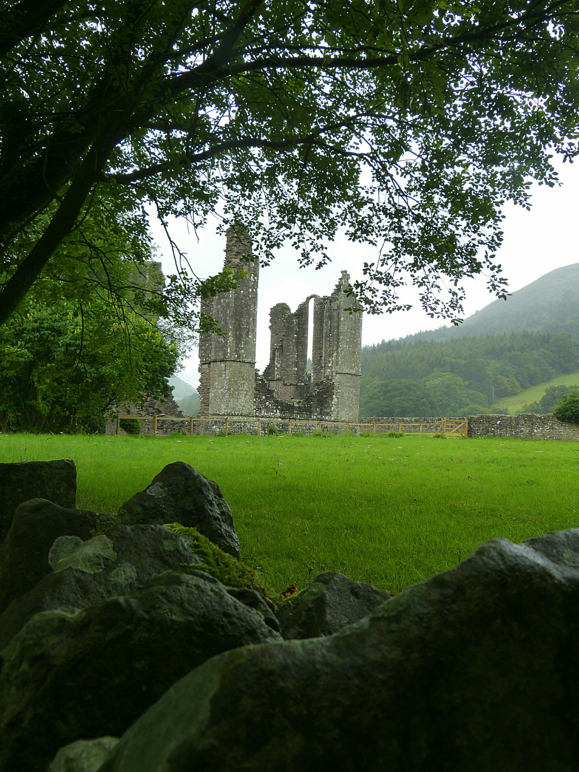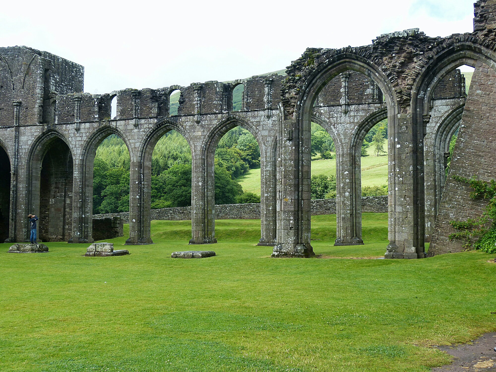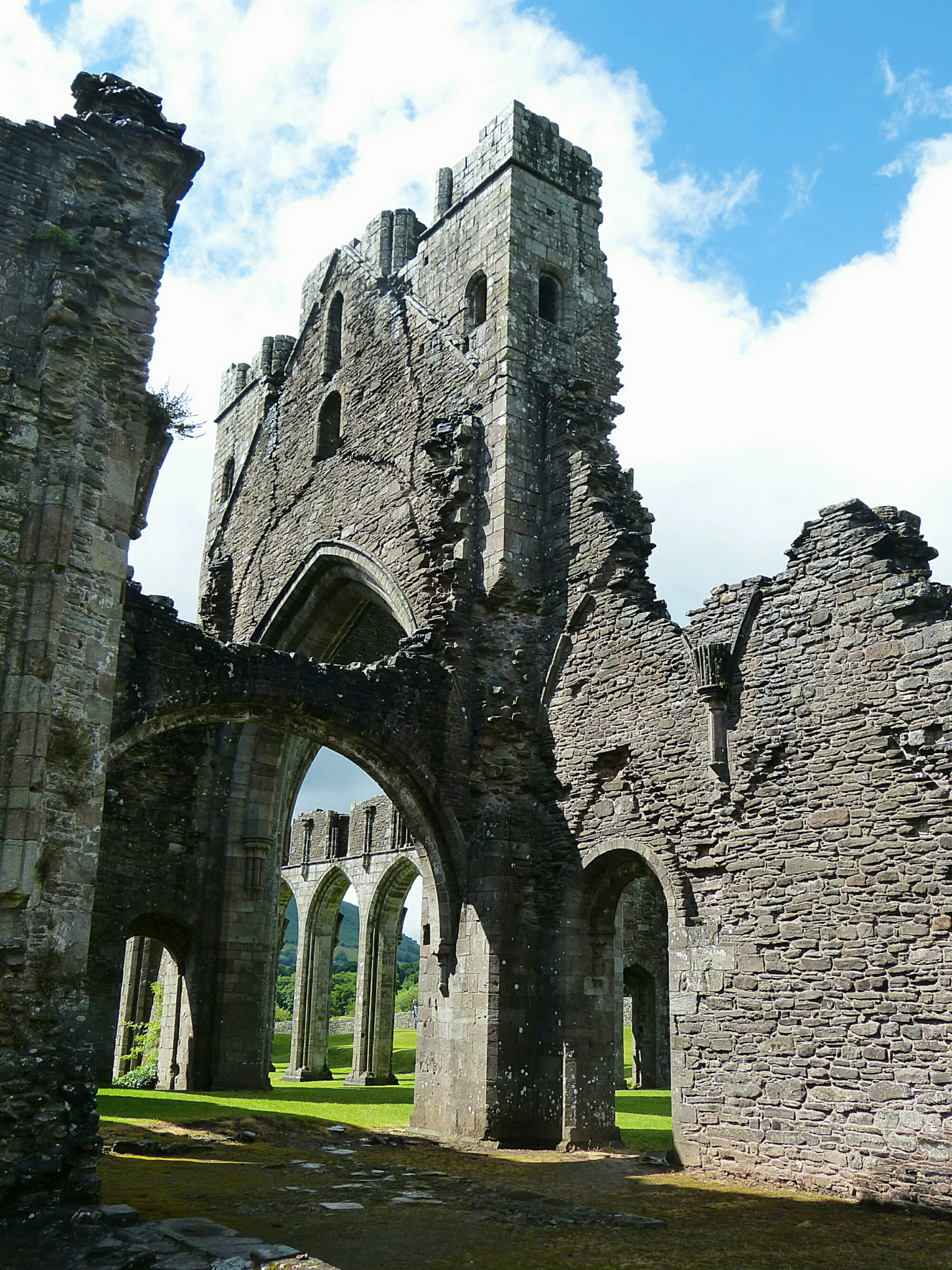 Back in the car and still having plenty of time we decided to head across into Wales and visit Llanthony Priory, an Augustinian Priory built around 1230AD and which was in use for about 300 years but was closed down in 1530 as part of Henry VIII’s dissolution of the monasteries. Nowadays part of the site is an hotel but the main part of the Priory remains in ruins. There is a tea shop where we enjoyed tea and cake and where the sun came out at last .