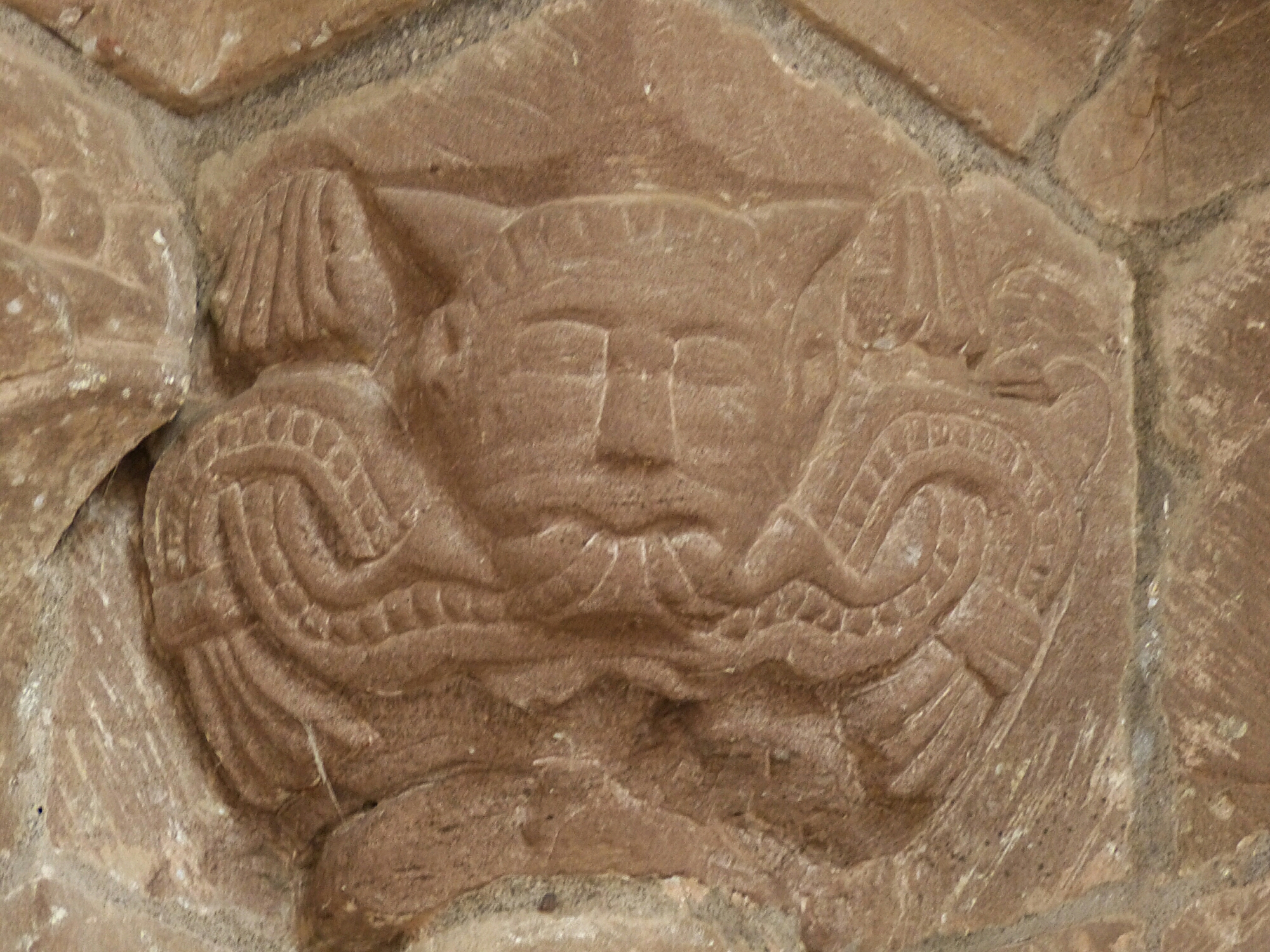 Green Man on the chancel arch column.