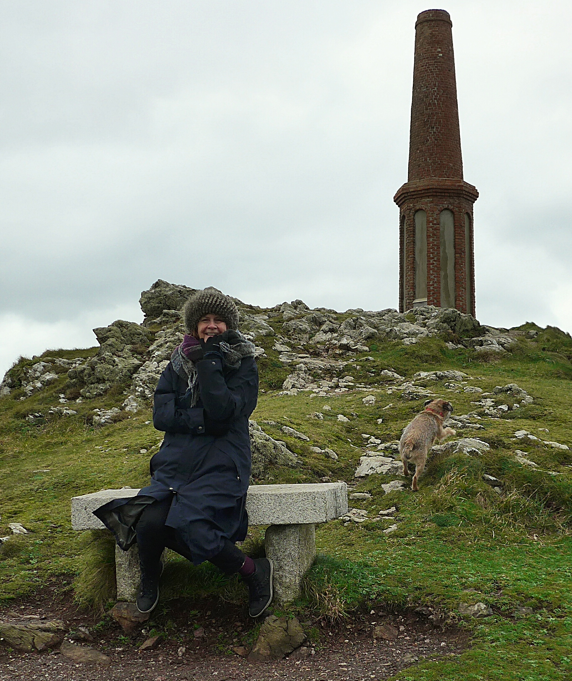 We parked and headed for the top of the Cape in dry but tremendously windy conditions; here’s my annual picture of Mrs Sixwheeler and Maude just near the day mark.