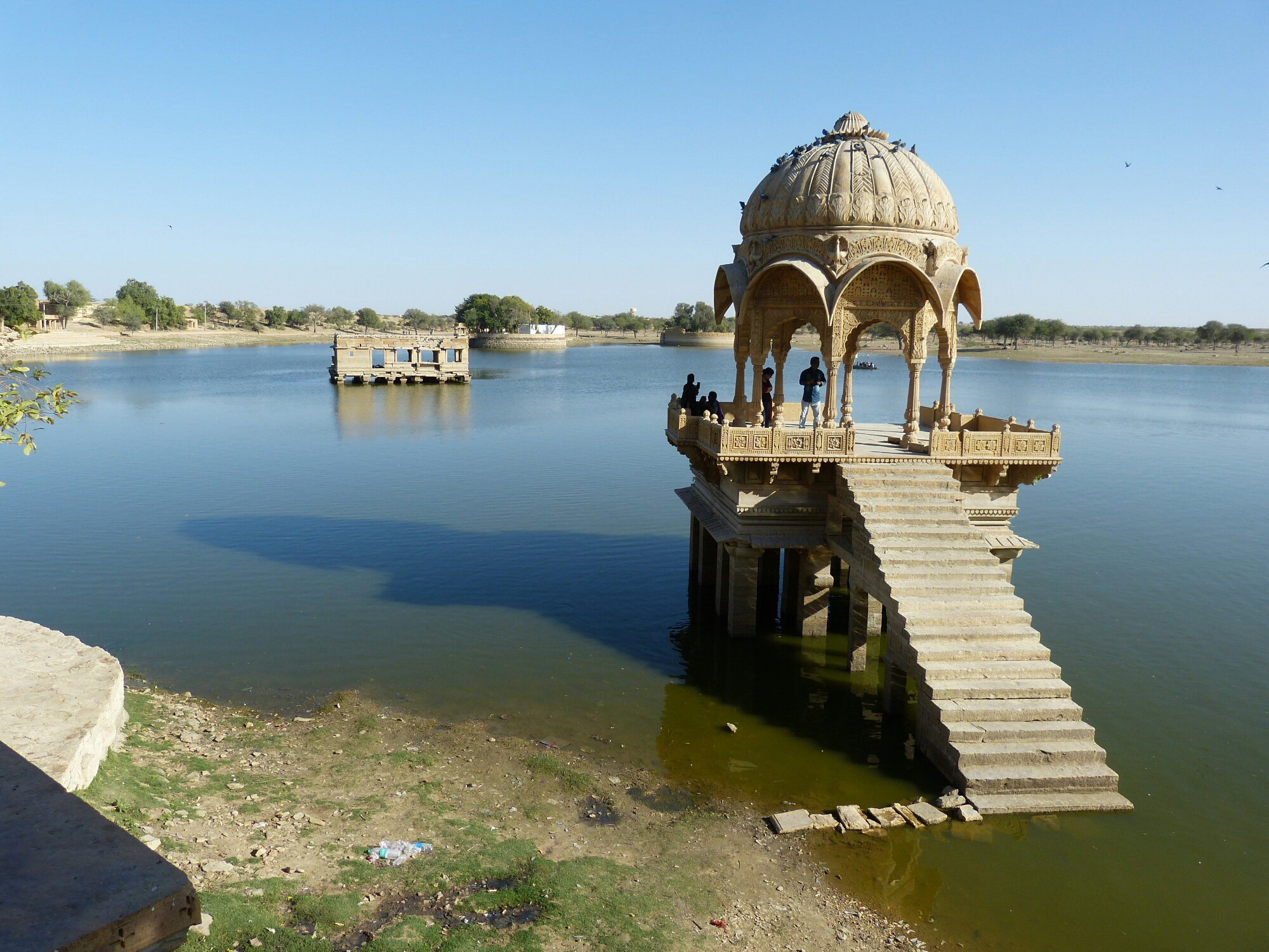 Suitably refreshed we were met by Puri,  our guide, and set off to Gadsisar Sagar Lake for a look. This involved getting Mrs Sixwheeler into a Tuk-Tuk, something she had been loathe to do but all was well. The Lake is actually a man made reservoir originally built to store water for the town but it has been superceded by artesian wells today. It remains a peaceful and romantic spot with a fine arch built to house a courtesan/dancer by one Maharaja.