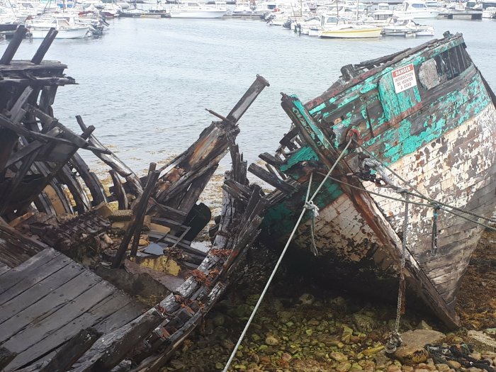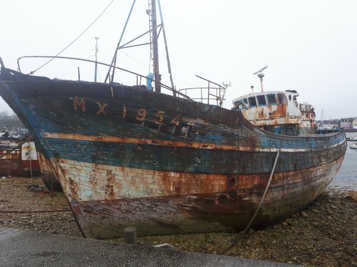 After lunch the rain had eased off so we walked round the harbour where there were plenty of modern yachts but along one wall a row of abandoned fishing boats looked a very sad sight.