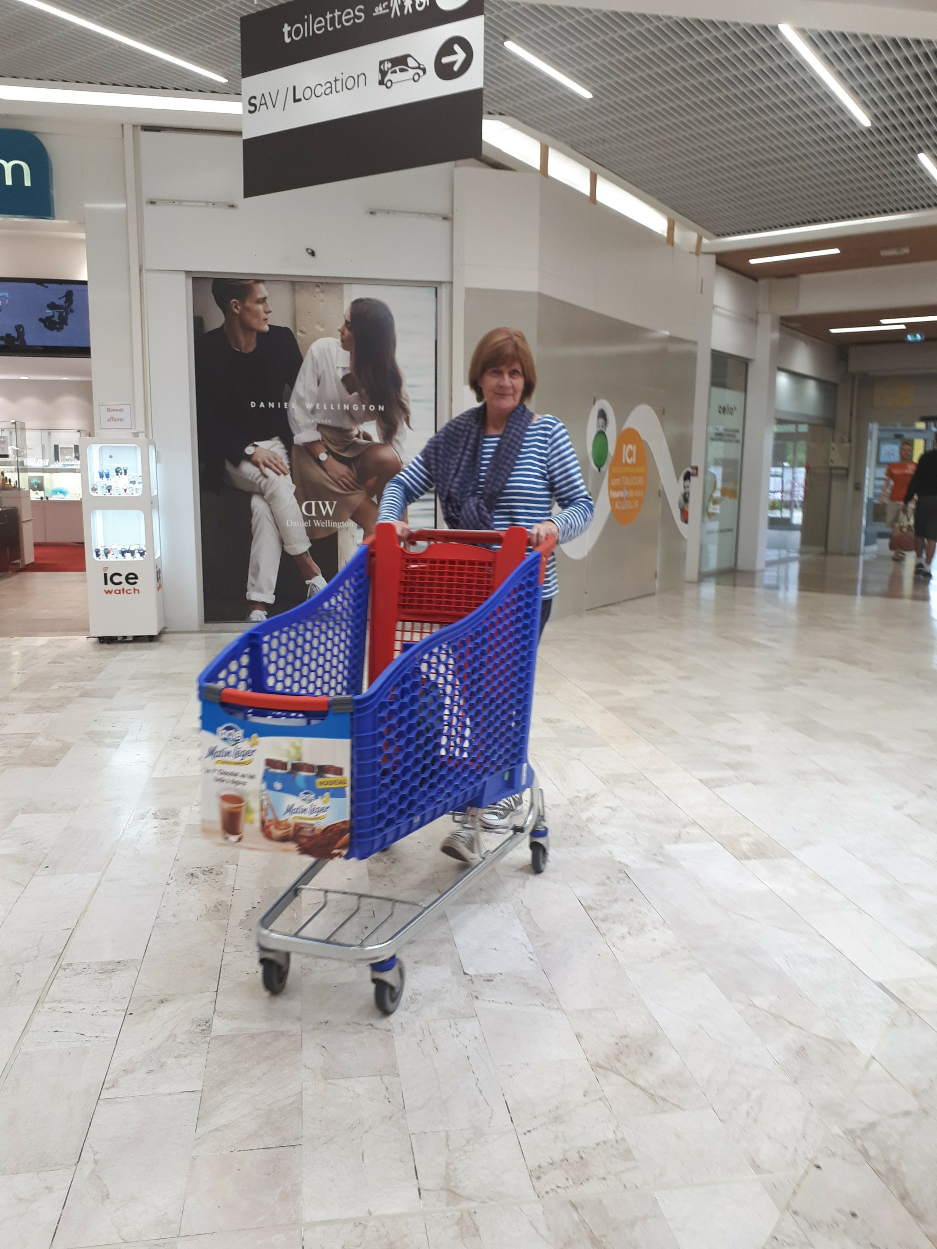 So we then made full steam back to the Carrefour Hypermarket in Quimper to do a little stocking up of those essentials that, apparently, only France can provide. Mrs Sixwheeler seen here arriving and ready for battle…
