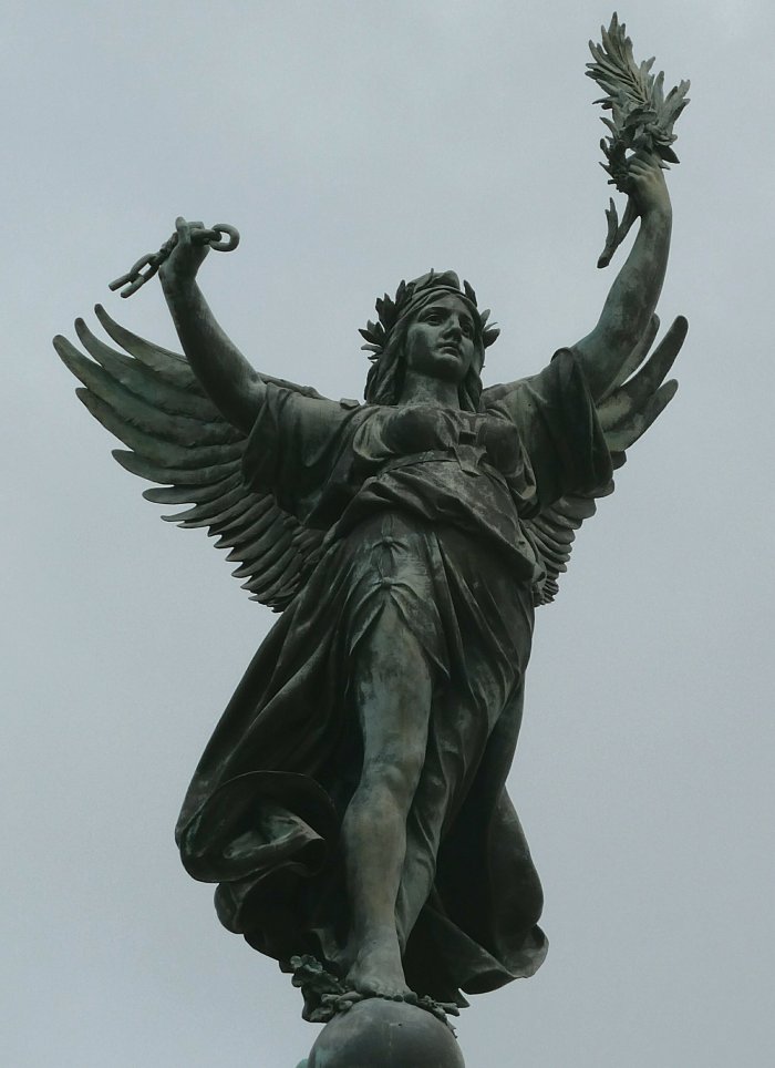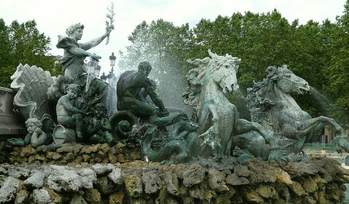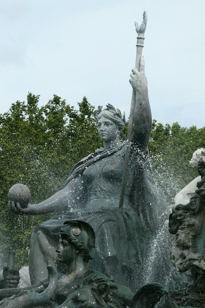 We decided to walk back towards the city centre for some lunch and some shopping that needed doing. On the way we crossed the Esplanade des Quinconces, an enormous open space at the top of which is the magnificent Monument aux Girondins. This is a real ‘in your face’ piece of a monument erected in honour of the deputés from Bordeaux guillotined in 1792; with massive fountains and a column topped by “Liberty Breaking Her Chains “, it really is something to behold,
