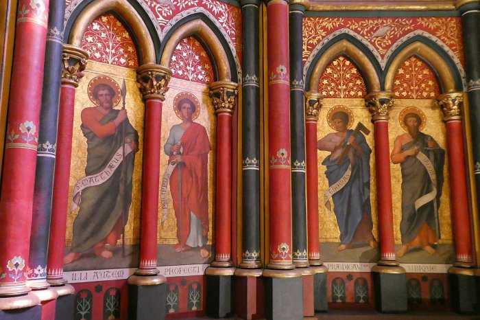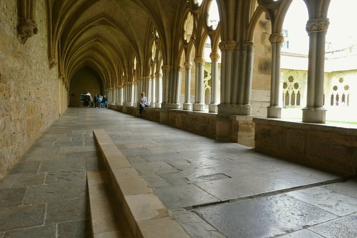 as well as some very pretty stained glass windows. There are some extravagant paintings illustrating the Stations of the Cross and overall there is a feeling af balanced magnificence. Outside there is also a very well preserved 14th Century Gothic cloister.
