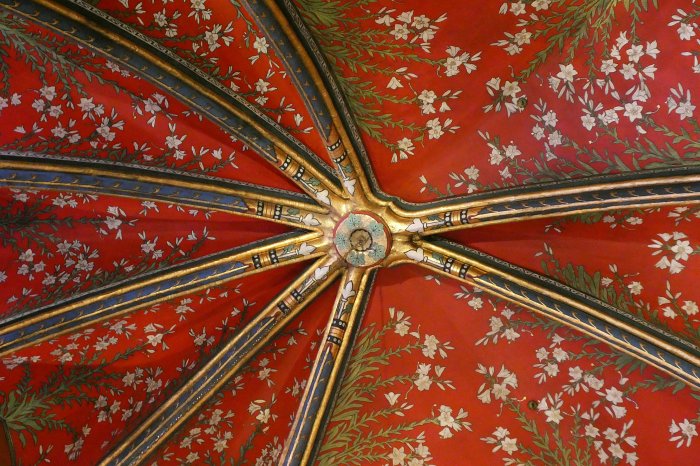 This enormous sculpted knocker dates from the 13th Century when any fugitive criminal who seized the knocker was assured sanctuary within the church. (Source: Michelin Guide – French Atlantic Coast. Hand Model: Mrs Sixwheeler – not a fugitive criminal as far as I’m aware). Inside the cathedral, which is currently undergoing extensive refurbishment, there are some beautifully decorated panels and ceilings