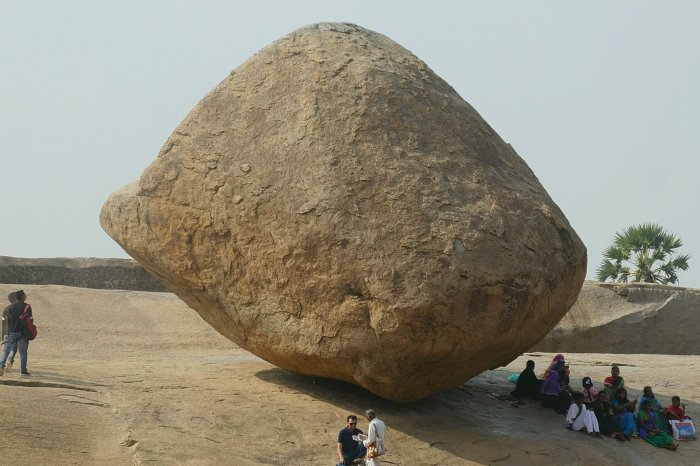 This is Krishna’s Butterball, a boulder weighing some two hundred and fifty tonnes but with a contact area of only about one square metre. There is some scientific explanation but local history has it that Lord Krishna liked eating butter and dropped some, I think that covers it.