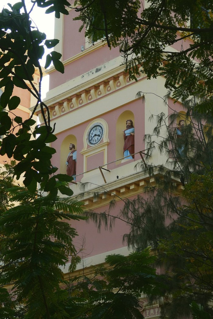 This is the front of the old catholic cathedral Notre Dame des Anges which is still going and very popular today although the mass is now said in tamil rather than french.