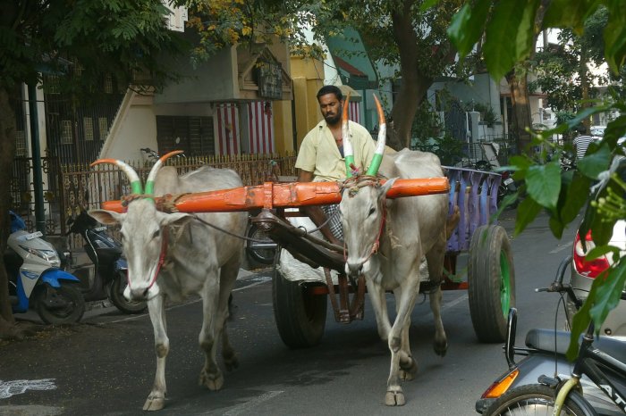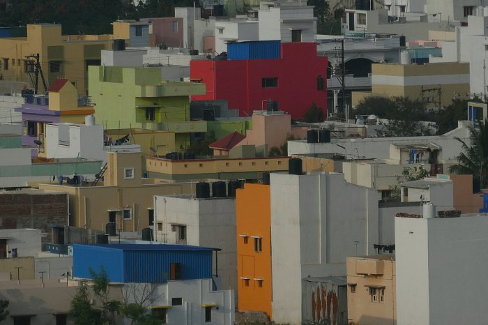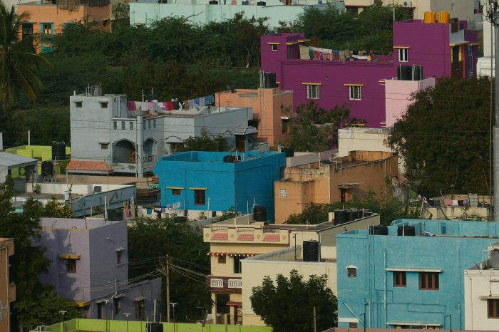 There followed the usual bustle of an Indian city, Madurai is the second city of Tamil Nadu, and they do have some houses painted in brilliaant colours.